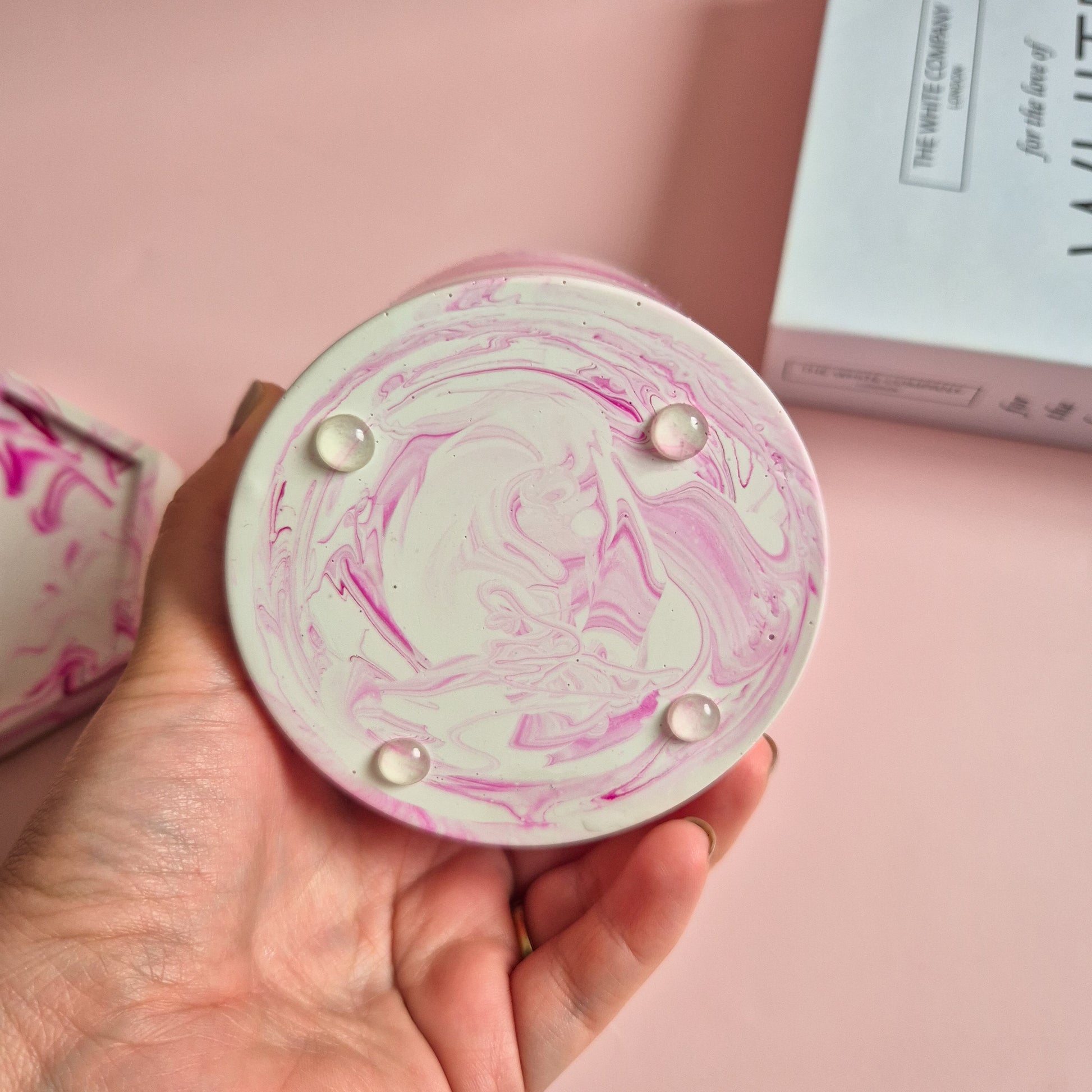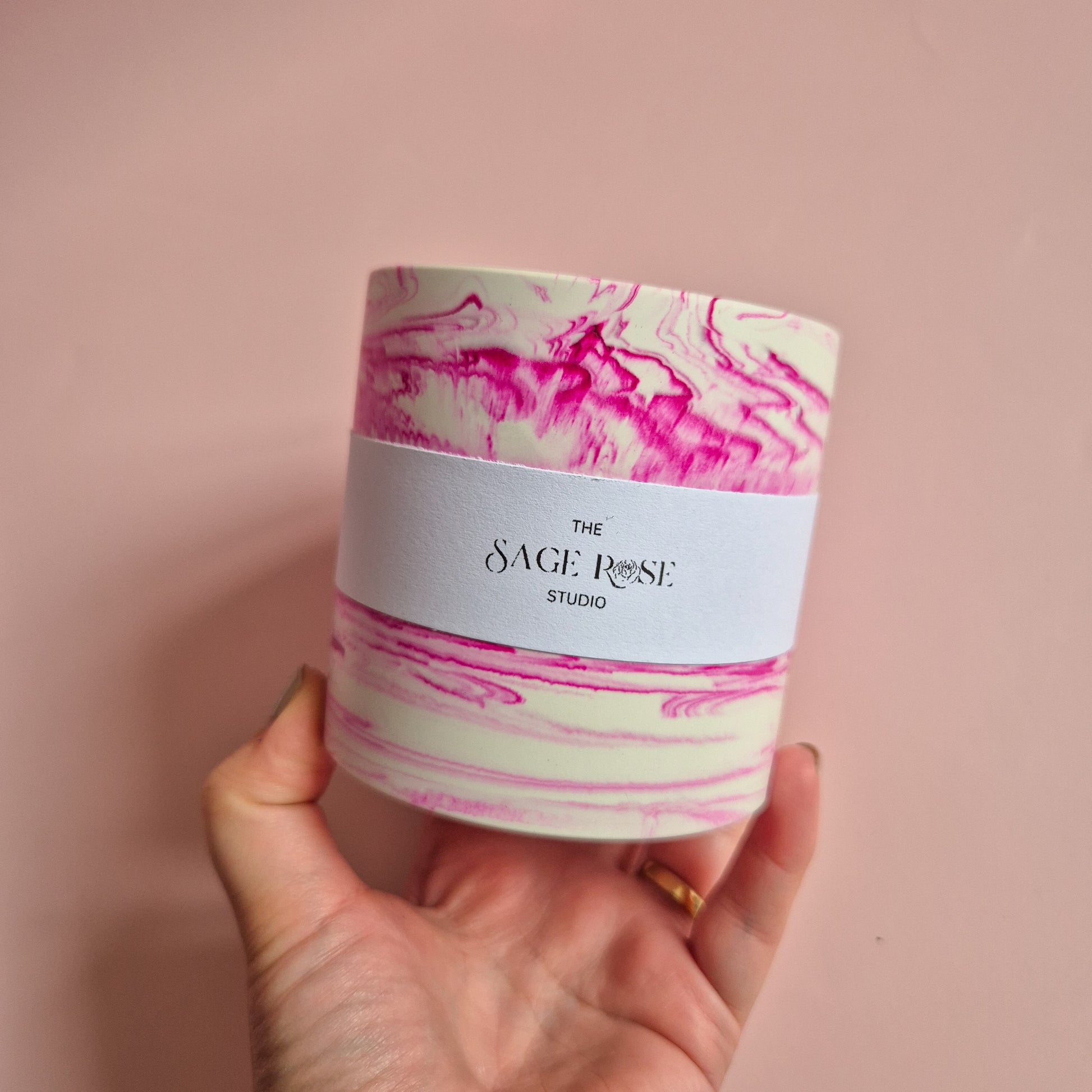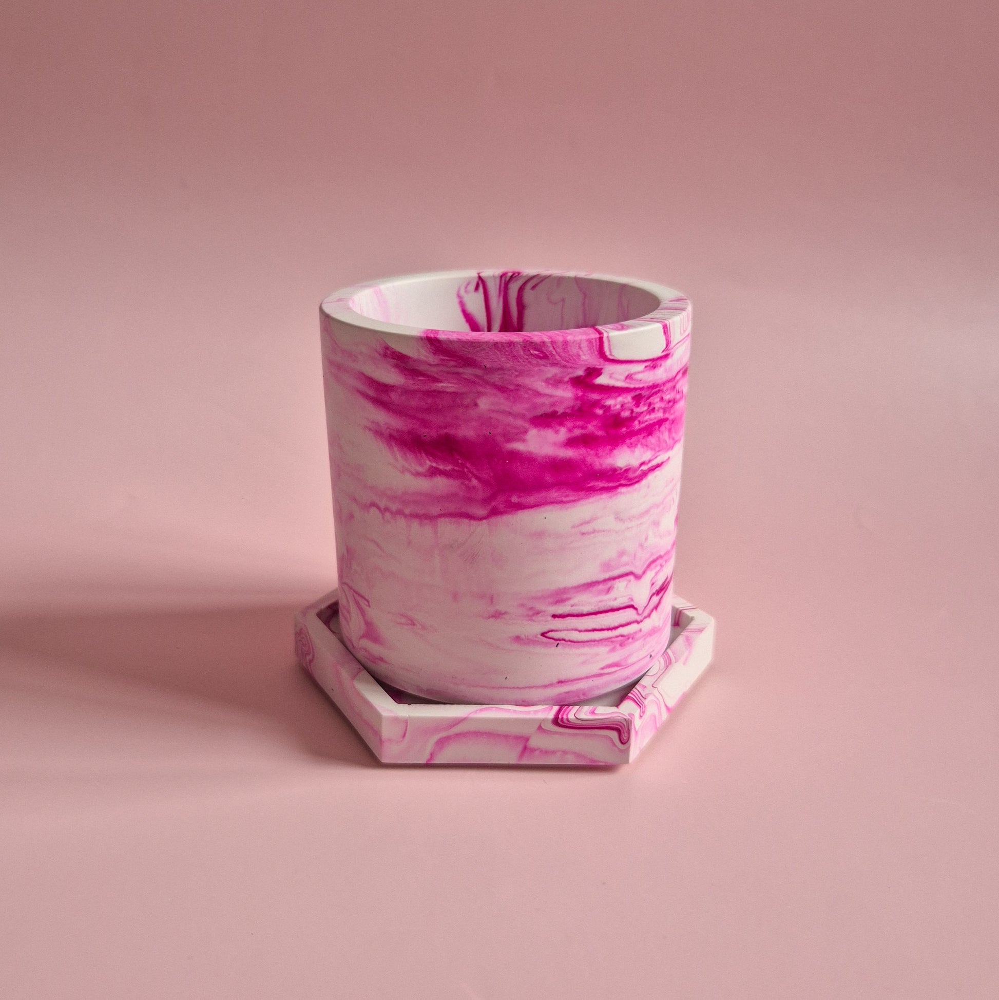 The pots are 100% handmade out of Jesmonite. The material is hand mixed, poured and then sanded to get this lovely terrazzo or marble effect.