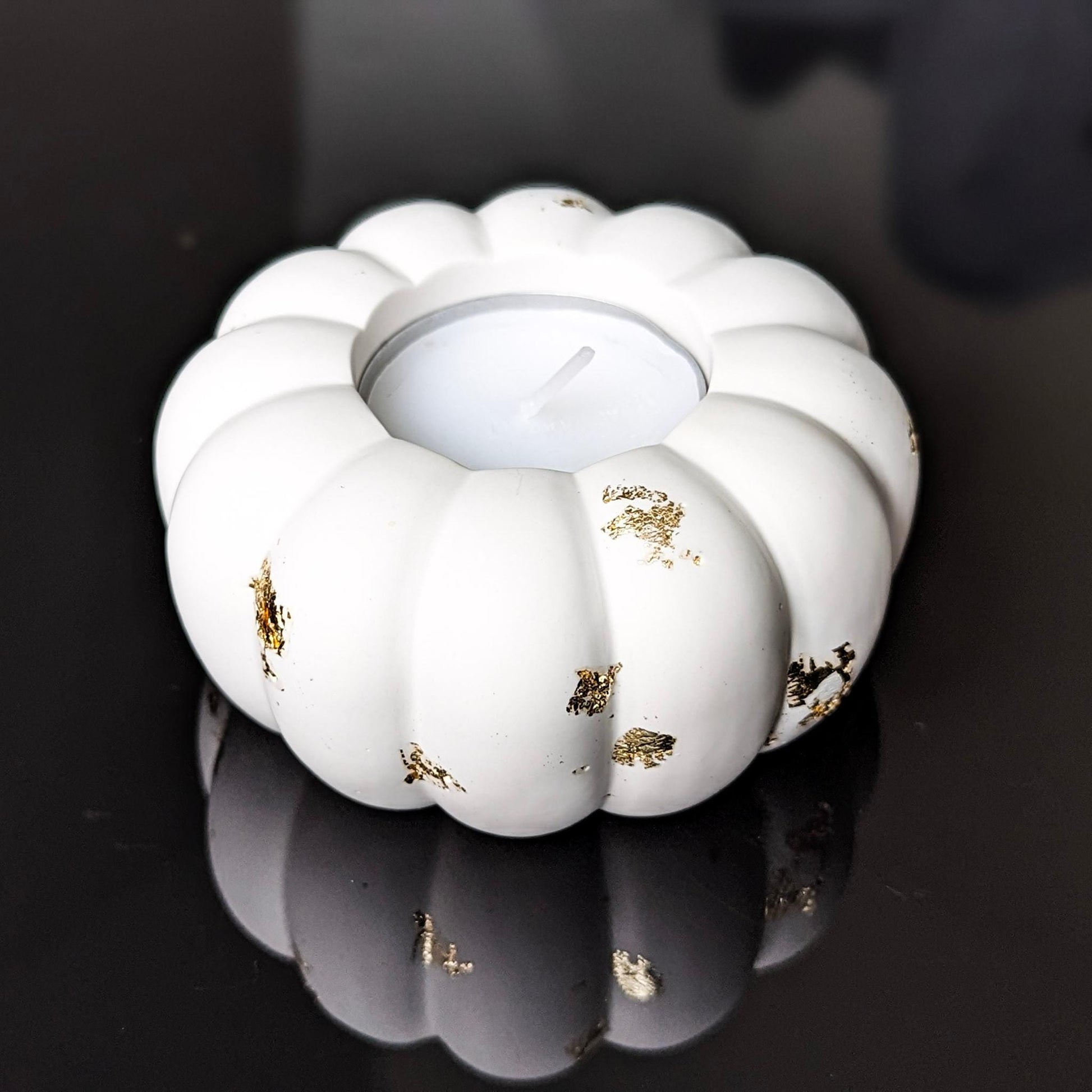 Pumpkin Tealight Holder- White,Beige, Gold flakes, Black